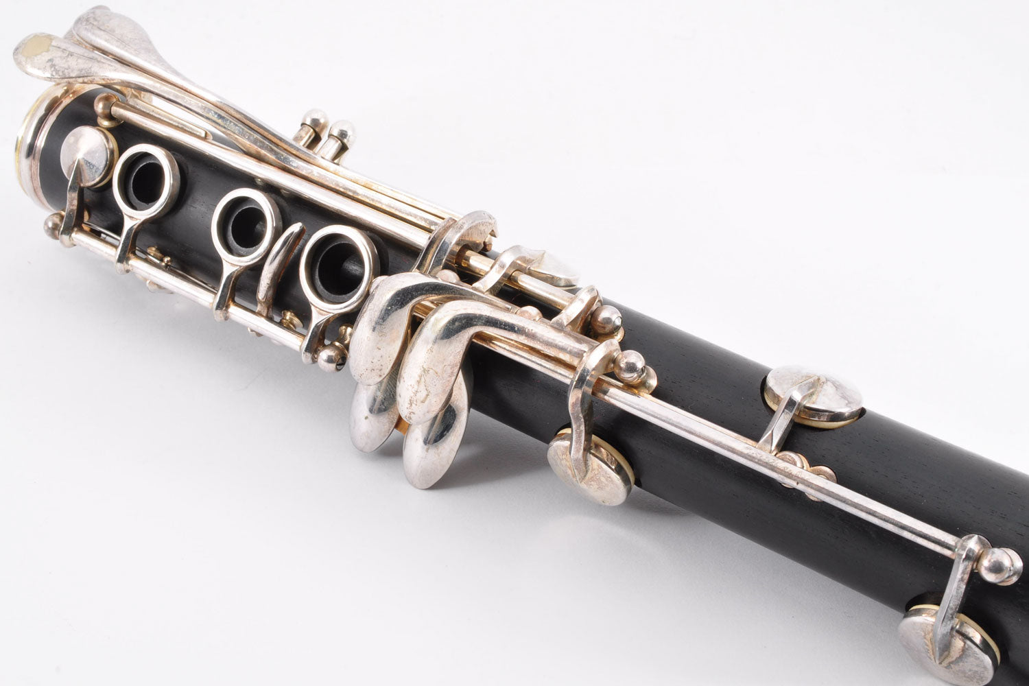 In test playing, there were no problems with key movement. However, blue rust can be seen in several places. Tampos (pads) and corks are treated as consumable items and should be replaced or repaired.