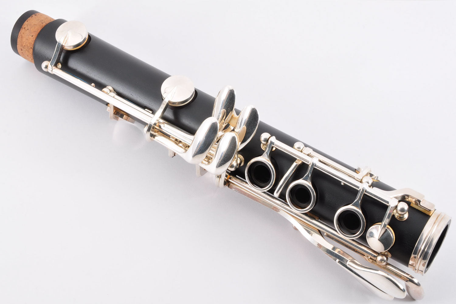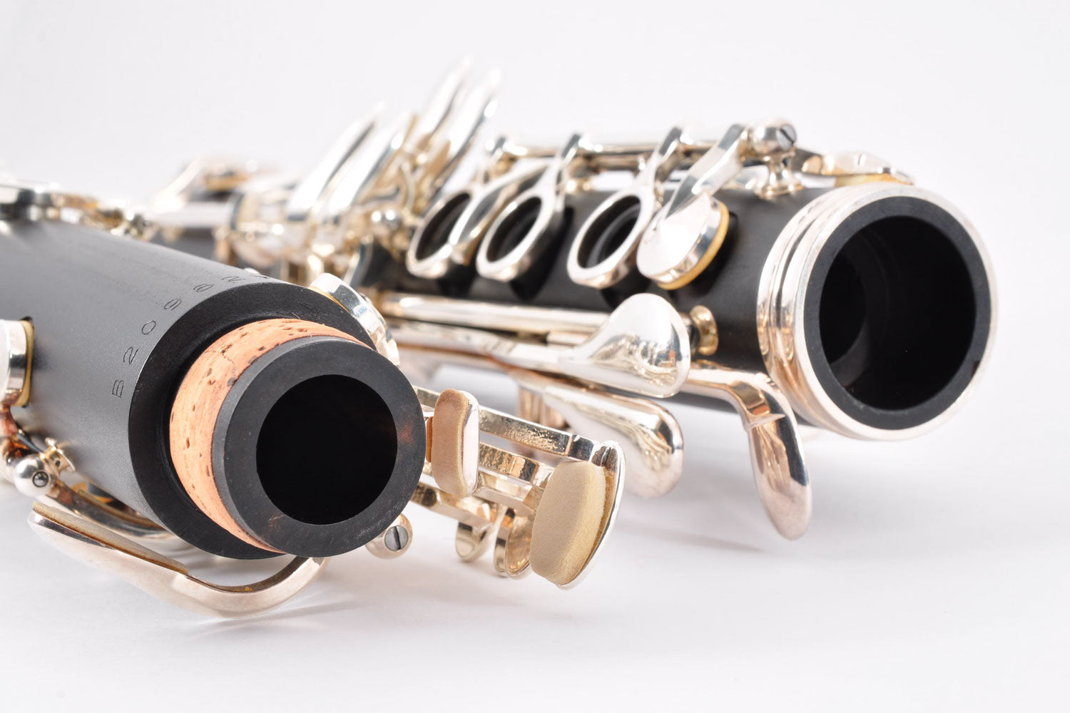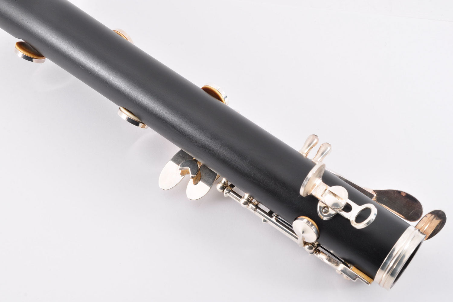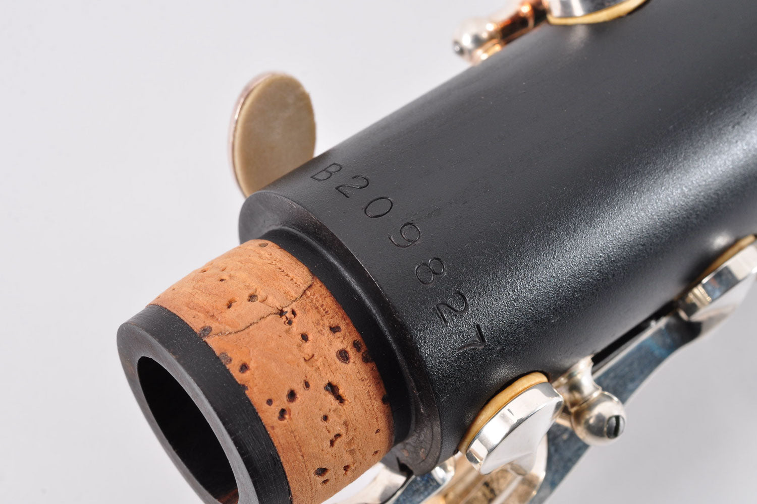 In test playing, there were no problems with key movement. However, blue rust can be seen in several places. Tampos (pads) and corks are treated as consumable items and should be replaced or repaired.